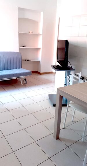 BILOCALE con ingresso indipendente, si accede ad un ampia zona tinello con divano letto, di fronte l'area cucina, completa di tutto il necessario, tavolo e sedie.