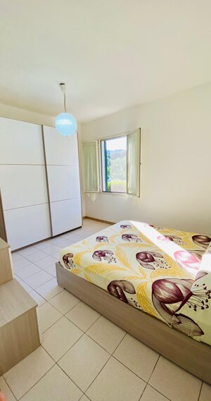 Successivamente si accede all'area notte, con un bagno completo e la camera matrimoniale, ampia finestra, armadio accessoriato e cassettiere.